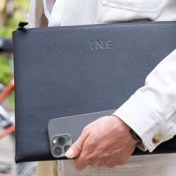 Pochette en cuir recyclé ! Design élégant et intemporel, cette pochette est fabriquée à base de chutes de cuir destinées à être jetées. L'Iné Laptop est conçu pour protéger votre tablette/ordinateur. Son style épuré en fait un accessoire tendance aussi bien pour les hommes que pour les femmes. Pour les specs : Disponible en 2 tailles : 10/11' & 14/15' Finition grainée Fermeture à glissière Poche intérieure Produit garantie 2 ans L'Iné Laptop est développé dans une démarche moins impactante pour l'environnement. On vous explique tout : Packaging en papier certifié FSC issu d'une exploitation forestière, disposant d'une gestion durable Matières : 60% Cuir recyclé Marquage : Made in France Gravure laser Possibilité de marquage recto et/ou verso