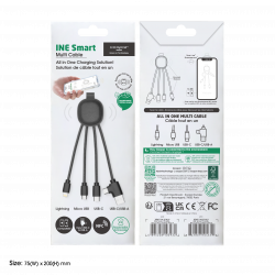 The Smart cable in premium and NFC version ! INE smart is an NFC cable made from recycled plastic and synderm. Thanks to an integrated NFC chip, it is possible to share the desired information in a targeted, efficient and modern way. No need for application, just scan the product to discover the shared information you want to share. For specs: Multi-cable NFC Function Input: USB-C and USB Output: lightning, USB-C & Micro-USB Compatible with any type of device (smartphone, wireless earphone, GoPro, etc.) Guaranteed product 2 years The NFC multi-connector charging cable is being developed in progress. We explain everything to you: Packaging made of FSC-certified paper from forestry, with sustainable management Topics: 31% Recycled ABS 17% Recycled leather 52% Recycled TPE Marking Made in France and certified inks NF71.3 Pad printing 1 color and more (digital) Possibility of marking on both side